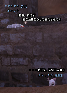 あいしゃです! 長くなったので2分割したよ(。◕‿‿◕。) 最後の記事になるので、たぷぅを235%増量しときました! タイトル「おとーさんと行く天99D(酒あり)」 なんか・・・ この図、見覚えあるよおおおお!(゚Д゚; 三 ;゚Д゚) ※'08.10.09参照 キングさん 足はみ出てるって!!ww この吊り橋、脆そうに見えて 実は最強じゃないのかw いろんな意味で(笑) ミラクル続出の今回の99D! たぷぅは後ろから発射されているイチゴが気になるようです。 あべしのたぷぅがやっと前を向いたと思ったら げろろのたぷぅが宙に浮いてるー!(゚Д゚; 三 ;゚Д゚) なんというミラクル! 最後の更新でも、 ゴールドマンの威力を見せ付けるおとーさん! すげえええええw Youは、本物のゴールドマンだよ!w 終わった後、げろろが 「わたしのした、かわいい」と言っていたので覗いてみると どこどこ いた! 橋の下で、たぷぅが浮いてた!(*´д`*) ミラクルすぎる!! 戦士1魔道1精霊3というメンバーでした。 いっぱい死んで、いっぱい笑わせてもらいましたw 巫霊ってなに?状態なのに、一緒に遊んでくれてありがとう!w このDは一生忘れないんだぜw 99Dの締めに、Mな人妻を踏んづけておきました。 旦那さん、すいません!w その後、AGOの重装備姿を見てました(*´д`*) 事故で転生しちゃったとか言ってたけど 2次転生した姿を見れて良かった!ww おめでとー^^ 自分のあごを鍛える為に、筋力あげたんですよね! これからも頑張れーw 動物たちに一斉に逃げられ、嫌われるポンw もしかして、動物たちの目の前で 脱いだのか!?(゚Д゚; 三 ;゚Д゚) かいちょーから うさぎのペットを頂きました! どうもありがとう!! ちょ ちょっとまてええええええ!ww ムーン プリズムパワー メイクアーップ!(。◕‿‿◕。) なんという名前www PC前でリアルに吹いたw その後、かいちょーの指令で 名前変えました(*´д`*) 本物の鬼嫁様(ヒコさん)は病欠だったので 一人寂しく こんなことしたり こんなことして遊んだりしてましたw 寂しい奴って言うなー!ヽ(`Д´)ノ そして 前回から続いている 愛の告白シリーズは いよいよ気持ちが両思いに! ・・・相手は男だけどな!!!!!!!!!1 (´Д⊂ このネタで締めていいのでしょうかw でも、あえて締める(*´д`*) 2009/05/25(Mon) 12:03:49