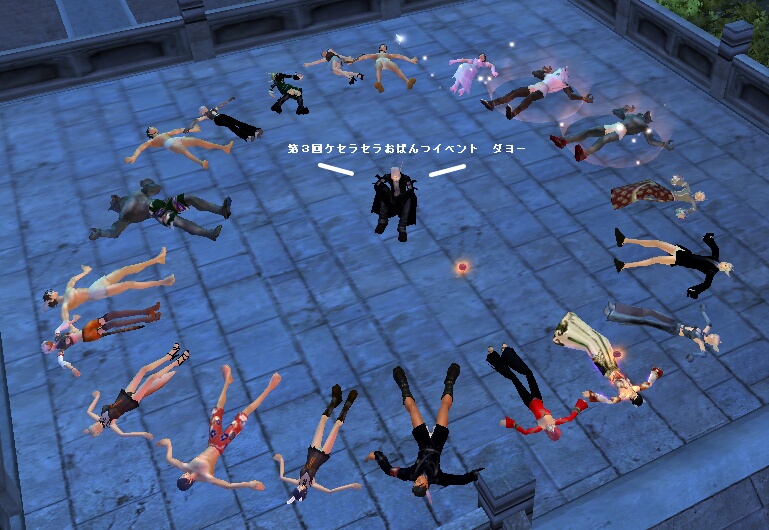 今回はおぱんつイベントのだけ内容です(`・ω・´)ノ 特に2回目・・・記事UPが遅くなってスミマセンorz ●第3回おぱんつイベント● (クリックで拡大) ハージマルヨー!(`・ω・´)ノ 毎回恒例で遅刻者は円陣の真ん中ですw イジメジャナイヨ イジメカッコワルイ むしろイジメは 見えないところで起こっていたりして・・・!! (可哀想なので顔はモザイク^^ シド兄貴GJ!!dd 最初は新人さんご紹介スピーチ なぶ姫 美しいので、キラーン加工倍増しときましたw しかし、後ろの放置るかさんのお供え物の犯人は姫です!! くろたん パンツに赤い靴という変態度UPUPのコーディネート!! 男前っぷりに嫉妬したので、花刺してみました^^ もじゃん クッ・・・・小さいSSしか撮れてなかった!! なので、ゴジラ並みに大きく模造しときました! 顔がでかくて可愛いパンダだYO(「・ω・)「 るでぃ ノーマルパンツでぽんの仲間入りですNE!裸王です 浣腸の友達ということで・・・ 浣腸友=ガチ友 ということに!! いじられ方が尋常じゃありません!w 浣腸、るでぃが可哀想なのでなんとかしてあげて下さいw くろにー このブログを見てケセラにはいってくださった方です^^ 復帰したてで操作も覚束無いのに、いろいろ連れ回してすんません おかーさん 前回は帰省のため参加できなかったので、新人扱いw 真っ裸&下駄という高度なパンツテクニック!! ちょww じゃっくん 読み方間違ってると最後まで非難してましたが、誰も聞き入れず。・゚・(ノ∀`)・゚・。 遅刻の為、真ん中に座らされてました!鈴屋さんみたいです 途中変な生き物がアラワレタ━━━━ヽ(゚∀゚ )ノ━━━━!!!! 合体!!!! もじゃんとくろたん許婚把握(〃∇〃) 時間オーバーのため、記念撮影はありませんでした すみませんorz その後、バタバタと慌ただしく「Bossパンツでふるぼっこツアー」へ! おとーさんがボスを持って逃げてそれを追いかける という図が面白かったですww いい写真も撮れましたw この後は万象の奇夜まで討伐しましたが、 そこでタイムアップ(´;ω;`) 反省が色々見えたイベントでしたが、 次回は時間配分をちゃんと考えて どのレベルの方も楽しめるイベントにしたいと思います がんばります( ノД`) みんなで楽しめるイベントが合言葉・・・! 第3回おぱんつイベント 途中抜け&途中参加含め 22名の方が参加して下さいました ありがとうございました<(_ _)> ●第2回おぱんつイベント● カボチャの大きさは顔の大きさ・・・ う~む・・・w (クリックで拡大) バランス的にぱぱんだを中心に円を作ってみましたw ぱぱんだが遅刻したわけじゃないよ!! (クリックで拡大) みんなで記念撮影(〃∇〃) (クリックで拡大) やっぱりおぱんつだよね!ってことでおぱんつで密集! ぎゅむぎゅむ センセー!男子が喧嘩しています!!! 最後はサプライズイベントのプチかくれんぼをした後、 花火で締め^^ 12月30日だけどメリークリスマースw この後は石クエ時間までPvP大会になりました!! 17名の方々、楽しい時をありがとうございました^^ これからもみんなと楽しい時を過ごせるように頑張っていこうと思います 温かい目で見守ってやって下さい<(_ _)> (生温かい目は不可!!w 来て下さった皆様、並びにお手伝い下さった皆様に感謝^^ ありがとうございました!! 【イベント中も目が離せなかったおぱんつたち】 進行しながらも釘付けでした(。・ρ・) ガチ以外bb ナイスパンツ! PR 2008/02/26(Tue) 09:46:10