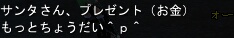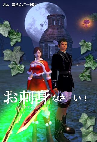 ギルチャでしか会えなかった なぶさん! ようやく出会えたので イェア!します!(?) 美人さんだよー!! と、孫たちに言われていたのに ずっと男だと思い込んでてごめんなさい(´Д⊂ 撮り逃したけれど、白馬に乗ってました^^ 食べかけのお饅頭(HP回復・2個使用済)渡したら 綺麗なびーだま(MP回復・未使用)をくれました! わらしべ長者キタ━━━━ヽ(゚∀゚ )ノ━━━━!!!!(アリガト━━━━!!!!) 「おやすみー」の挨拶の時には、必ず おさしみー というナイスキャラw (現在ケセラにて大ブーム中w) 闘技場で、ラスボス倒してボスの座奪ってたみたいですなw つえええEE! これからもよろしくねーw そして お友達の 小イベントに顔を出させて貰いました! 誘ってくれてありがとうノノ ・・・アレッ こんなイベントだったっけ!?w ち、痴漢じゃないス!w 無実っス!(゚Д゚; 三 ;゚Д゚) キャラクターを有名人ぽく作ろう!のイベントでしたw いい味出てたww(中身の人もw しかし、傍から見たらぱんつ祭りにしか見えない・・・w GJ!(!? 途中で時間切れ(´Д⊂ 楽しい時間をありがとうございましたーw じゅっ・・・ 12月のギルドイベントのレポートを 忘れてるわけじゃないんだからっ! (´Д⊂ オソスギテ ゴメンナサイ 2008/01/09(Wed) 21:49:23