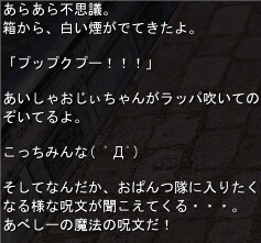 しもーぬ作 までるん作 ⇒第1回の結果 AISYA(精霊♂) Lv100 ケセラセラ 「だっこ申請を下さると 1日中元気に走りまわれます!」 あいしゃ(妖獣♂) Lv8× ケセラセラ 「もふもふ100回お願いします。」 あいしゃん(妖精♀) Lv1× 「ゴハン下さい。」 ユイファン(弓♀) Lv4× 「・・・・(イベント頑張る)」 今まで来てくださった 54984名のお客様に感謝! 有難う御座いました(「・ω・)「