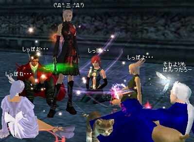 ゲゲゲの鬼太郎の最近の猫娘と昔の猫娘をつい比べてしまうあいしゃです こんにちは! 69D79Dかおすツアーに行って来ました^^ (途中からの参加でしたがw) 精霊3のため 蛇と亀の盾をすることになりました。 無事!タゲがぶれることなく終了! (爆発使うのついつい忘れてたYO!w) おつー^^ !? 倍率ドン!(〃∇〃) にーちゃん、普段ぼーっとしてますが、 こういうとこ見逃しません! ほっほ^^ その後行くことになった、79Dダンジョンでは アマス盾に抜擢!(忘れちゃいけませんが、当方精霊です) 気を良くしたにいちゃん、魔法をどーん 返り討ち ド━━━(゚ロ゚;)━━ン!! 生命札切れてました・・・。 自分でネタを作ってしまったさーw こんな無茶な事ができるのも、信頼した仲間がいるからだよね いつもどうもありがとう! 今回のカオス仲間をご紹介 特攻隊長!精霊ですよ! この人なくして特攻隊は語れません! オシャレもいつもすげーw しかし、なんで武器で殴ってるのか(笑) マデルさん!ぎゃおーん カオス状態にもかかわらず、最後までつき合ってくれてありがとう!! オシャレでDの中で何度も着替えてました^^ (ニューファッションをその場で買っていたというのには驚いたw) あべさん! 69Dでは迷子になってカオスにカオスを重ねてましたw 唯一の前衛さんにもかかわらず、いつもつきあってくれてありー^^ セフィさん! ・・・・・あらっ ごめん。間違えた。 こっちがパンツ会長のセフィさんです(`・ω・´) Dに行く度に、成長してる会長を見るのが楽しいし、嬉しいです 突っ込みはいつも光のごとく早いZEーw ヒコさん! イチゴ爆発!溢れだすイチゴ!!! 実は、表にはあまり出てませんが、 ヒコさんが一番特攻好きなんですよ・・・!って昔からか! ドロップはしょっぱかったですが、 とても楽しかったです^^ 終了後は・・・ マデルさんを囲む会w しっぽを握りたいという気持ちでいっぱい(あべさん以外) その後、進化して 怪しい図にw ムツゴロウさんは、たぷぅと猫と小熊と(+メイドさん)戯れ マッドサイエンティストは、女性で研究中(助手はパンツ会長) 封神巻物1本で万物の元(2個)作れるんですね 知らなかったーw それらを交換してくれるNPCの神秘の商人”ゼイヒン”の情報が どこにも出てなくて、探し回ったよ・・・(´Д⊂ (75D、85Dの入り口にいました) 2007/12/12(Wed) 17:56:38