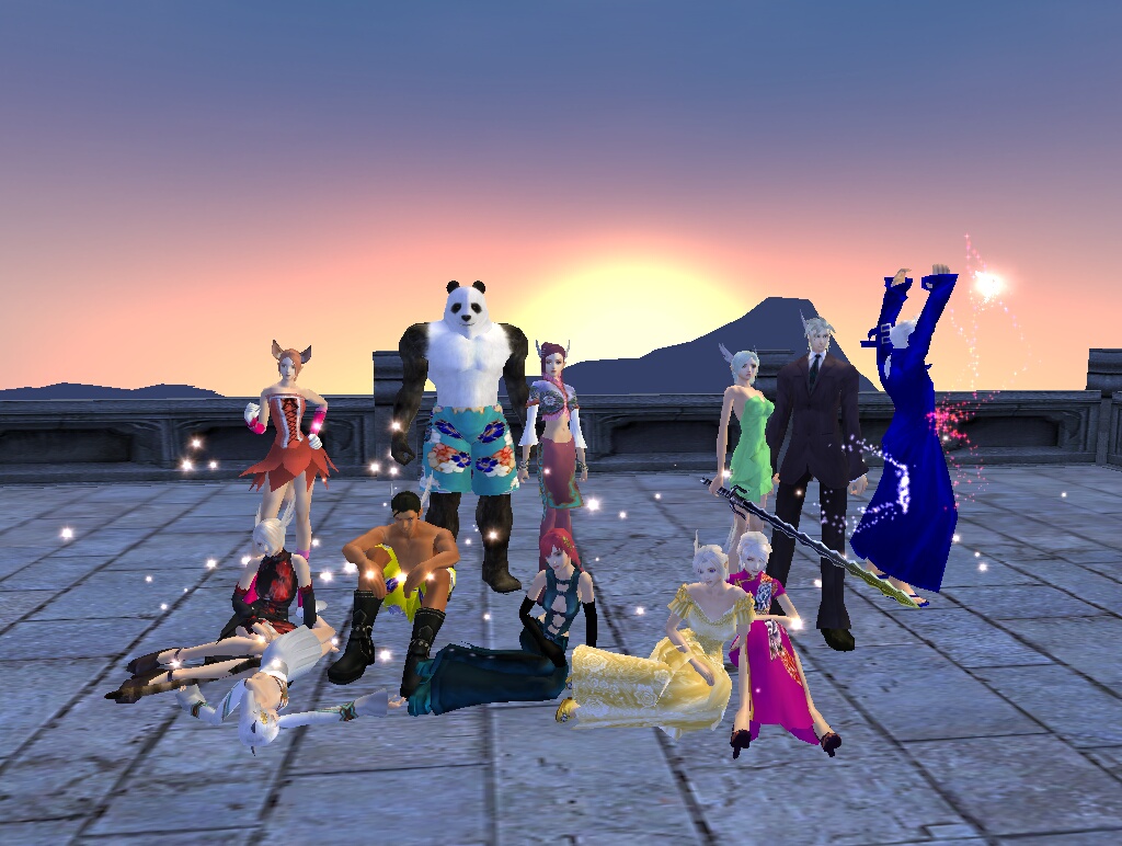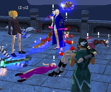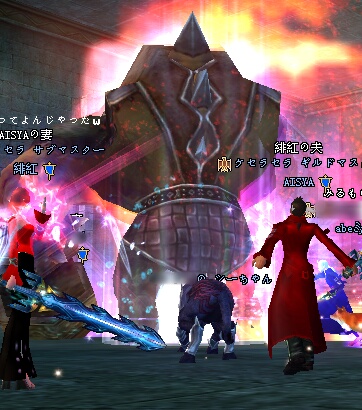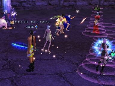 ケセラギルドイベント~おパンツの会~ 開催! 前回、予告してくれたニューヒーロー シドさん! チャットでもおもろい人だと思っていましたが 登場する時にネタ仕込んでくるなんて、なんて芸人魂!!w おぱんつの会にふさわしい幕開けです だけど、みんなパンツヒーローから、 すこーし距離をとって見てましたなww そんなこんなで ちょっと遅れがちでスタート! みんな着席し、ひとりずつ自己紹介。 ママン「こんばんは。ケセラの飲兵衛です」 と言ったとか言ってないとか! (言ってませんw) 色々、知らないことなんかを聞けて楽しい時間でしたw 名前の由来なんか特に、「 !(゚-゚) 」って思うことが多くて。 みんなを知っていくって楽しいねー! サルが!w チームに分かれてる様子です。 1~4チームに分かれて19d攻略。 ボスドロップのみでチームの点数を競います。 各ドロップアイテムの点数はこちら ☆1(白)装備品・・・1点 ☆1(青)装備品・・・2点 ☆3装備品 ・・・5点 鋳具(黄金装備)・・・10点 矢クジでチームを決めたので全くのランダムでのチーム分けです。 行き先も各チームで決めて貰いました。 ①ひこさん、ままん、だおだお ⇒エルフ19d ②たしさん、きゃりさん、レノさん ⇒獣19d ③あべさん、セフィさん、シドさん ⇒人間19d ④てんてん、ぱぱんだ、あいしゃ ⇒人間19d 4番チーム、開始と共にぱぱんだ走る!! 追いかけて行くと、ムカデの行列!! てんてんと一緒に その後を必死で追いかける!! アリの行列!!(((( ;゚Д゚)))) 平均レベルが高めのチームだったので難なくボス前に到着 途中、②番の迷子チームから、ヘルプが来たので ボス前までご案内ーw 兄ちゃんが来た方向に向かって「こっちだー」って走ってました(゚Д゚; 三 ;゚Д゚) そっちは入り口ですよーw みんな一斉にボス討伐 その後「・・・」のギルドチャットが大量に流れる。 その結果は!!! 結果発表! ①コイン4個 ②☆3 2個 装備いくつか ③コイン7個 ④コイン8個 すごい接戦キタ━━━━ヽ(゚∀゚ )ノ━━━━!!!!(笑 しかも点数とか全く関係ないしーw 狙った通りの結果になって、ある意味大満足でしたw みなさん、おつかれさまー それぞれのチームで考えて進めたみたいで、 とても良かったと思います^^ この後は ささやかながら、表彰式(賞金授与) そして、みんなのお気に入りの服装にて記念撮影^^ (SSクリックで画像拡大) (左上から) セフィさん、ママン、ヒコさん、パンツ紳士、きゃりさん、てんてん (左下から) レノさん、シドさん、あべさん、だおだお、ぱぱんだ、たしさん みんなお洒落━━━━ヽ(゚∀゚ )ノ━━━━!!!! あべさんが退屈そうだし、きゃりさん倒れてるしでNG!w 右下(飲兵衛組の)ままんと(ぱんつ・カレー・迷子組の)セフィさんは いい雰囲気でOK(〃∇〃) 逆光なのに前方から光が漏れてて幻想的な写真が1枚だけあった! コレお気に入り^^ ところが・・・ 最後を締めくくるはずの花火がなんと大失敗! もっと花火を素敵に打ち上げれるように頑張ります(´・ω・`) 解散後は、残った人で、PvPとか89d 突撃したりとかで 遊びましたw みなさん、本当にお疲れ様でした!!^^ こんなに楽しいイベントにできたのは、参加して下さった皆さんのお陰です。 これからも、変わらずにおぱんつを愛して下s(ry ほんとうにありがとう これからもよろしくね また、次回12月中に開催します! メール一斉送信しまーすNE! こんなおぱんつな会に参加したいと言う方は いつでも歓迎致します^^ 2007/11/25(Sun) 20:28:33
