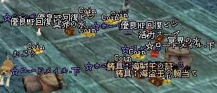 何のことだろう・・・?と聞いてみると 「第2回デザインコンテスト」(髪型部門)の結果が出てるのこと 何故提出したのがばれたのか!と思ったら、 残念賞だったんですねぇ! いやー 正直ネタもなにも考えずに送りましたが ちょっとネタ的な髪型の方がよかったかなと 今度はもうちょっと考えて送ろうと思いましたー だが! あえて、ひとつ突っ込みたい! ( ゚Д゚) <モデルはにーちゃんでーす!! 性別間違えられててちとショックw ついでに、五月晴れキャンペーンに当選して500円お小遣いキター ってか・・・・応募したのもワスレテター!w さてさて・・・ 雑談掲示板のあべさんの日記帳にも書いてありますが 深夜79d、感動のドラマがありました! 戦士、魔導、精霊の3名で特攻です。 まずはゲストー! 正直この部屋が一番死亡率高いです(´;ω;`) 回避できずに、この部屋に当たってしまった時はいつも あべさん(戦士)にボスとお供を引き連れて マラソンして貰って、その間に、ひこさん(魔導)とうち(精霊)で お供をちまちまと撃破していくんですが 昨日は初のボスの一本釣り成功ー!! 少し遠回り。 この敵は遠距離から攻撃すると反撃して来れないので あべさん(戦士)はお休みです 露店で応援に吹いたww ということで、危なげな場面もなく、 リバースパイル戦に! ふと横を見ると ひこさんから いちご吹き出てたーーー!!w ペンギンもびっくりですわ ドロップ !!( ; ロ)゚ ゚ 鋳具ふたつキターーーーーーーー たぷぅかわええーーーーーーーー (ちょっとちがう) 意気揚々とアマス戦へ! トライアングルアタック! 無敵ですなー! 次はジェットストリームアタックしようZE! ってえええええええええ !!( ; ロ) ~~~~~~~~ ゚ ゚ アマスリングきたあああああああああああ(左下) ガクガク(((( ;゚Д゚))))ブルブル 恐ろしいドロップでした! そのほかにもレアがあります。 探してみて下さい。 わかりますかね? ・たぷぅ ・ぱんつ ・ひこさんの夫 ⊂彡☆))Д´)パーン 最後はあべさんの優しさたっぷりの露店メッセージでお別れです あでぃおーす! 2007/10/07(Sun) 21:50:37