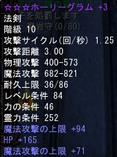 ということで、素早く更新(〃∇〃) 感動したので貼らせて頂きました! (クリックで拡大) ラクが描いてくれたにいちゃん!! おおおおおおおお かっけえええええ そっくr( ´Д`)=○ )`ъ')・:'., 素敵な絵をありがとーん^^ SAIを使うのが初だとは思えないよーw おぱんつ姿も期待してまーs( ´Д`)=○ )`ъ')・:'., そんなにいちゃん、 今日のクリップ石クエで84になりまして 憧れの法剣装備できたーw Lv79~83まで装備してたタイプツール ↓ ↓ ↓ Lv84憧れのホーリーグラム (どちらもバフなしの数値) クリティカルが少し寂しくなりましたが、 敵を殲滅させる速度は速くなりました^^ 武器や防具が新しくなると、やる気がUPしますねーw HPも4000を超えました(`・ω・´) なんか嬉しいですねーw ヒコさんからは体力ヴァカと呼ばれますが! 猛火の村で放置ってたら、あべさんが後ろにいたよ! ぷぅー 悪臭の漂う感じがよくわかりますNe! PR 2007/10/02(Tue) 15:09:36