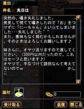 キャンプファイヤー!! ぱぱんだは都合で(笑)おしりのみの出演ですw あいしゃに至っては本格的に火が燃え移っています ケセラ戦隊(ヘンタイ)ゴレンジャー!今ここに誕生!(笑) 素敵レターを頂きました(´Д⊂ 超感激・・・・!! 「にーちゃん」すごく気に入っています ![]() これから是非その呼び方で宜しくお願い致しますw おやつ付いてたーーーー!! 300円以内・・! バナナはおやつに入るんでしょうか?(`・ω・´)ノ すぐに 妹に読ませ(読んで聞かせ)ました! 「ありがとう!嬉しい!!」 ところが にーちゃん、ちょっと味見しようと思って飲んだら 美味しくて全部飲んじゃったみたい!! あーらら! 本当にありがとうございました^^ 嬉しい囁き、本当にありがとうございます!!(´Д⊂ ハッスルハッスル! 2007/08/18(Sat) 21:52:37