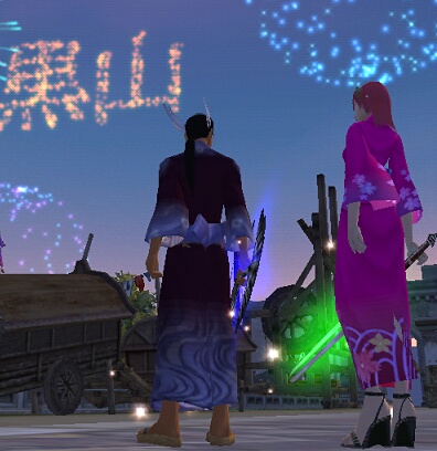 浴衣&草履が真っ黒になりました。 ランダム染色なかなかやりますな^^ 色々試着したり、染色したりしたんですが、 お兄ちゃんには黒が一番落ち着く色かなと思いまして これにて和服専門研究会は解散です(早w こそっと花火大会にヒコさん(+遅刻して見れなかったビリ)と 行って来ました。 たーまやー この時期は花火大会が多くていいですな! ピンクの浴衣もっすごくいいですな!!!!!!!!! 祖龍西で露店場所を求めてウロウロしていると ゚ ゚≡Σ(∀ *) ウヒョーーーーーーー! 以前、伝言を頂いた方から囁き頂きましたyおpooooo (⇒以前の記事はこちら) スンマセン、リアルで後ろにひっくり返りました!! ①番「お兄ちゃん」で正解だったとはΣ 「お空がきれいだねー」 「ピチピチ」 「今日のご飯はカレーかなぁ」 「ピチピチ」 ~ 朝の夢幻の港にて ~ (この後 ラク姐さんに見つかりました) こんなお兄ちゃんで本当にいいンでs( ´Д`)=○ )`ъ')・:'., 今度はお姿拝見させてくださいね^^ 多数のお言葉ほんとに嬉しかったです!! ありがとうございました! クンクン。 シンダフリ・・・・ タベナイデネ? 2007/07/24(Tue) 09:36:50