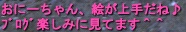 困ってるボスを一掃しようってことで 金曜日の夜、ギルド内で急遽開催されました! 22:00~2:00 参加者:ヒコさん、だおさん、ぱぱんだ、ビリ(+あいしゃ) みなさん、遅い時間にもかかわらず お付き合い下さってありがとうございました<(_ _)> ・ブルヘイドキング ・ミーアヘル ・シンハイル ・シャドウダーク ・深海の巨龍 ・ルーラルエイプ ・ヘッジキング どれも無事に討伐することが出来ましたー! (ルーラルのみ事故死ありでしたが;;) ワイワイしながらの討伐、とっても楽しかったです^^ ありがとうございました ![]() しかーし・・ 1枚もSSを撮ってなかったorz ごめんなさいorz 次は参加する気マンマンの妹さんでした! (最近はまったく出番無しw) 次は、サウザンサーペン、レッドドラゴンあたりかな・・・? RDはお兄ちゃんも残ってるなんて イエナイ・・・イエナイ・・・・・・。 ッコエエエエエ!! 露店放置中に、またまた応援の囁きを頂きました・・・!! ウレシ━━━━ヽ(゚∀゚ )ノ━━━━イッ!!!! しかし!またもや放置中だったので、戻ってから 焦って囁きを返させて頂いたのですが、 オフラインです。とメッセージが返って来てしまいました(´Д⊂ なのでこちらで返信させて頂きます!本当にゴメンナサイ; 超、超、超、元気を頂きました!!嬉しかったです! おにーちゃんはハッスルして絵を描き続けますー!!ヽ(゚∀゚ヽ 三 ノ゚∀゚)ノ ありがとうございました^^ 2007/07/28(Sat) 17:18:52