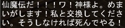ありがとうございます 応募したのが大体1ヶ月前・・・・ 品位が低いブログとして、選考から漏れたものだとばかり 思ってましたΣ(ノ∀` ) 今日はとてつもなくショックなことがありました。 それはクリップ中の出来事。 やっほーーーーーーーい! 今日も愛しいあのNPCに会えるんですNe! 近づいてみると、意外と普通だった。(意外なのかどうなのか) グフフ あれ? おかしいな。 言葉はもしかしてランダムで決まる? (シツコク連打) Σ ええええええええええええええええええええええええええええ これって修正掛かってる? たしかに以前のはちょっと過激でしたが・・・ もし、 言葉が修正されても、あのテンションでお願いしますorz むしろ、妹さんが大ピンチだ~!! (⇒7/6のブログを参照) ジョー●アCMの キム兄は最高だと思います 2007/07/19(Thu) 00:28:11