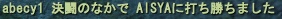 しもーぬ作 までるん作 ⇒第1回の結果 AISYA(精霊♂) Lv100 ケセラセラ 「だっこ申請を下さると 1日中元気に走りまわれます!」 あいしゃ(妖獣♂) Lv8× ケセラセラ 「もふもふ100回お願いします。」 あいしゃん(妖精♀) Lv1× 「ゴハン下さい。」 ユイファン(弓♀) Lv4× 「・・・・(イベント頑張る)」 今まで来てくださった 54984名のお客様に感謝! 有難う御座いました(「・ω・)「