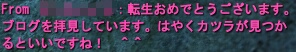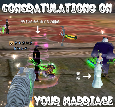 突然 Σ(・ε・) な、なんだってええええええ 『逃げろヴィラるん!今ならまだ間に合う!』 聞いた瞬間 そんな言葉しか浮かばなかった!!w そして、その後ほんとに居なくなる花嫁Σ(・ε・) 新郎が世界チャで慌てふためくw 鯖落ちだったようです(チッ ←? 聞けば、祖龍西でかんちょう嬲りが行われているとか こっそり参加|ω・´) 重くてほとんど動けぬぇぇ お祝いの一発を入れたかったのにかんちょうまでたどり着けず(´Д⊂ その後、祖龍のコロシアムに場所を移して 2次会のぬっころ祭り! かんちょうぬっころと言いつつ、あべしが色んな人に仕掛けて 追いかけられてましたw かんちょう と ヴィラるん ほんとにおめでとう!! って なんかちがくね!?ヽ(`Д´)ノ パパン囲まれてふるぼっこ!ムキー! こっそり嫁様も参加してたヽ(`Д´)ノ 主役のかんちょういないなーと思ってたら つねに 攻撃されまくりで、入り口に戻っていたらしいw 横では、獣達がゴロゴロ鳴いていましたとさ(*´д`*) 末永くお幸せにねノ ヴィラるんを泣かせるなよーw 2008/08/01(Fri) 22:21:32