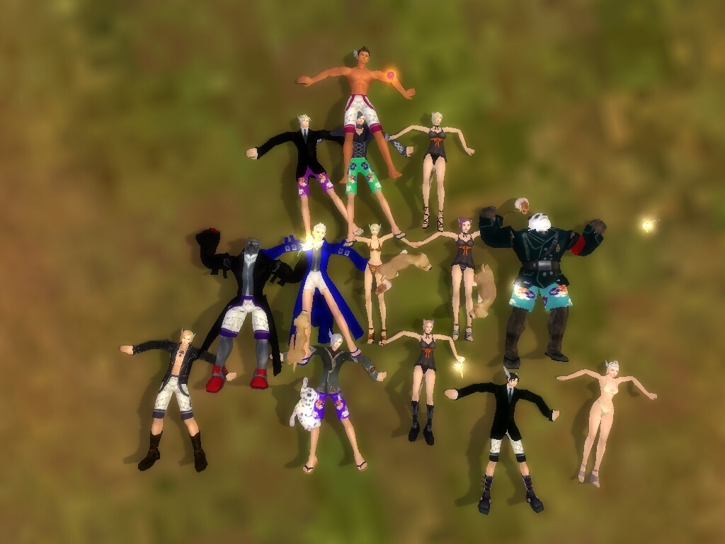 はーじまーるよー! かぼちゃを被った ションボリじゃっくる激写w 今回は万獣で集合! いつも遅れてくるマスター。 既に集合場所には人がたくさ・・・ コラアアアアアアア!!ヽ(`Д´)ノ 変化すんなー!!ヽ(`Д´)ノ 公式の「完美オーディション」に応募する為に 予約していた月星のしまへ かっぷるで向かう 全員ちーむおぱんつに入れようと イベント企画の段階で提案していたんですが、 ぱんつを愛していても 「見るだけで充分!」 って人もいるだろうということで ・チームぱんつ ・チームおしゃれ に分かれて撮ることに! 【チームぱんつ】 ※クリックで拡大 撮影:アヴィ姐さん 撮影:だおだお 撮影:おれ 【チームおしゃれ】 ※クリックで拡大 撮影:あご 撮影してくれたみんな、ありがとう!! みんなのPCがすごいとおもいましたw 自PCで画面精度をUPさせたら、 重くて喋れず動けず進行がやばかったorz 次は剣仙城で恒例のかくれんぼ ですが 今回は、みんなと立場を逆転させて 「逆かくれんぼ」!! いつも隠れている4人が 今回は鬼となってみんなを探し、 鬼に見つけられた人も鬼となって、 まだ隠れている人を探していくという だんだん鬼が増えていく、かくれんぼという名の サバイバルゲーム。 イベント専用のRを立て、そこに全員入って貰って 見つかった人は退出して行くという形で残り人数を把握。 順位は3位まで賞金あり。 みんなが隠れるところを探している間 鬼の4人は 夫婦喧嘩(`・ω・´) (ミスばっかりで笑えたw) こっちでも夫婦喧嘩(`・ω・´) 隠れている人だけが残るR内の 「ヒイー人が減っていくー」「いやああああ」「やべえー」 という緊迫した生々しい声が面白かったw いやー 正直もっと遊びたかったですw ですが、タイムアップ。 賞金授与式 スキル職人前にケセラセラ集合! 1回目 1位 くろたん 2位 しゅりさん 3位 ぱぱんだ 2回目 1位 ひゅずくん 2位 ぱぱんだ 3位 だおだお おめでとう御座いました(`・ω・´) って獣族ばかりだw かくれんぼの隠れ場所が だんだんレベルアップしてきていますな! 次回は負けねーどー!! 時間が短かったので、 バタバタした進行で申し訳ありませんでした<(_ _)> 次回は ゆっくり楽しめるような そんなイベントを一生懸命考えていきたいと思います まったりと参加して頂けたら嬉しいです。 参加してくれたみんな、本当にありがとう! 企画軍団のひこさん、あべさん、おかーさん 場所を探してくれたせふぃさん いつもいつもありがとう! 感謝しきれません。 2008/07/05(Sat) 09:42:39
