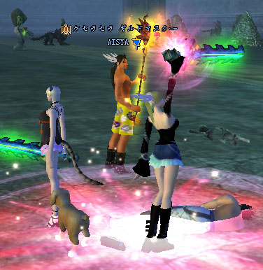 あにーとアヴィ姐さんが転生致しました! 2人の転生のお祝い会場の様子 ワイワイガヤガヤ めちゃめちゃ人が多いΣ|゚Д゚| そんな中、斉藤さん(サイトさん)に乗って あにーが転生! あにーどこおおおおおおw ここでした(`・ω・´) おめでとー!! 続いて、ネスラードさんの上に乗って アヴィ姐さんが転生! どこだあああああああw ここでした(`・ω・´) おめでとー!! 嬉しいことに、 何度も立ち会える機会を頂いていますが この瞬間は何度見ても「頑張ったんだなぁ」と感じて 心から嬉しいです まだまだ 一緒に、魔王目指して頑張ろう!w あにー&アヴィ姐さん 本当におめでとう!! 【INキューブ 女の戦い】 もじゃとしもさんが激しく戦っていました! 「わたしのためにやめてー(棒読み)」 【いつもの位置にいなかったので】 いつも質問、楽しみにしています! 【全員露店が♂】 以前に聞いたでぷちの状態になりました! 全員名前が数字になってたw 【これはみごとなぱんつ】 しむらーうしろー HENTAIが迫ってます!逃げてー!! 名前消すのはあえてやめましたw さいごに 私事ですが 昨日AM11:00ごろ 8年間一緒にいた愛兎が亡くなりました。 今はぽっかり穴が空いたように寂しいです。 ずっと側にいてくれてありがとう! 2008/06/21(Sat) 11:15:07